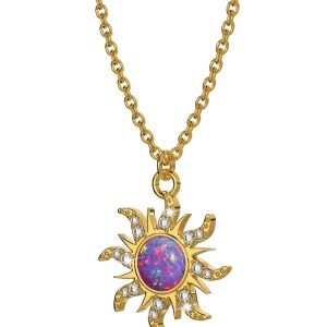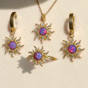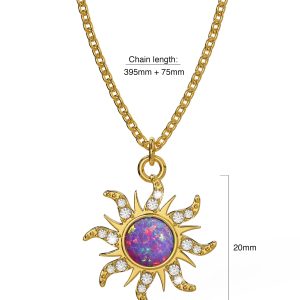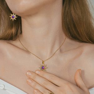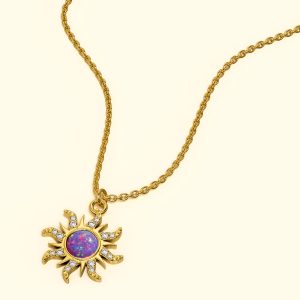 Radiate with the magic of the sun and the enchantment of opals with our Rapunzel Opal Sun Necklace. This captivating piece features a glowing purple opal set within a delicate sunburst design, evoking warmth, beauty, and fairytale charm. Perfect for adding a touch of fantasy to your everyday style, this necklace will surely be your new favourite statement piece.