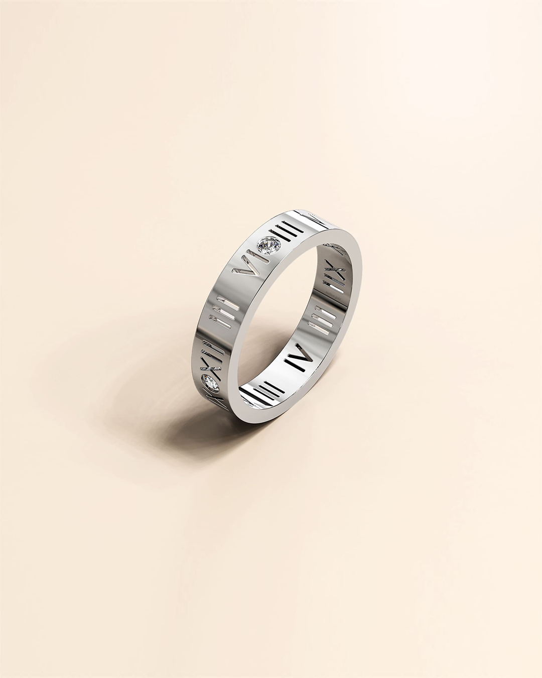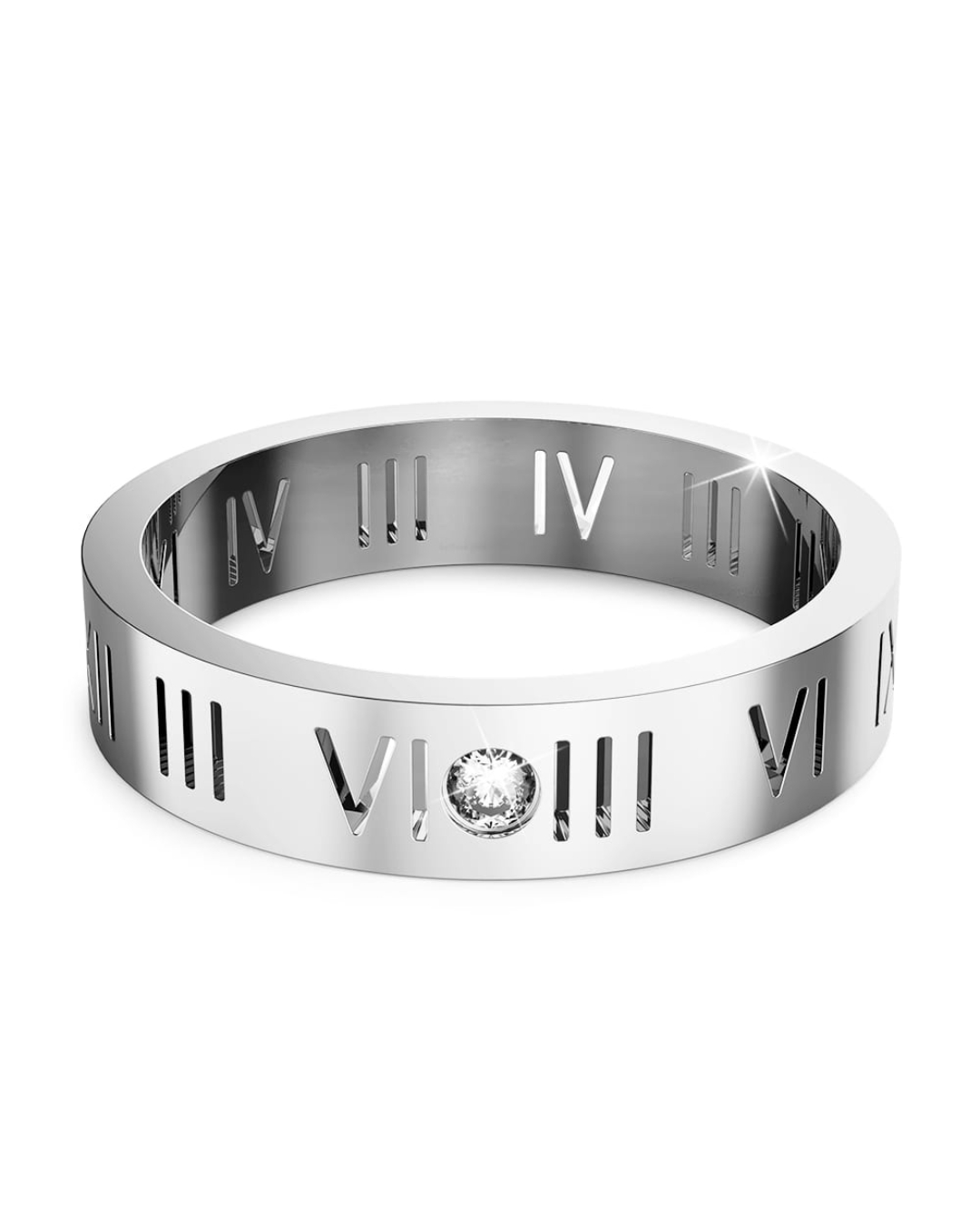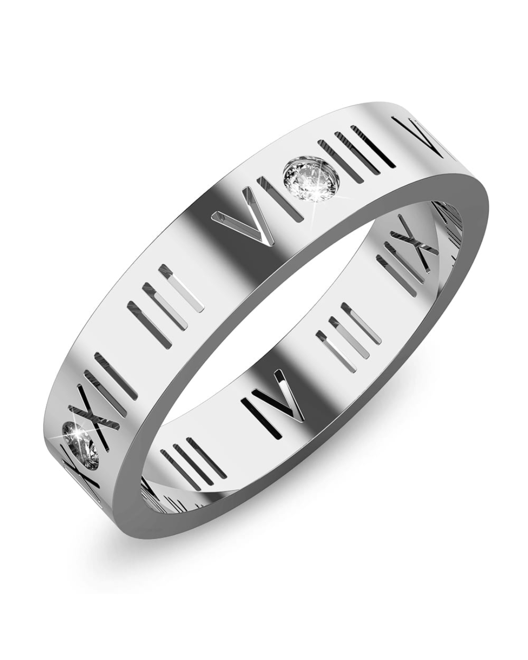 Show off your love of Roman culture with this ring band embellished with sparkling Zirconias. Adorned with an open roman numeral pattern and gleaming cubic zirconias, this masterpiece will never fail you. A lovely piece designed to beautify the hands.