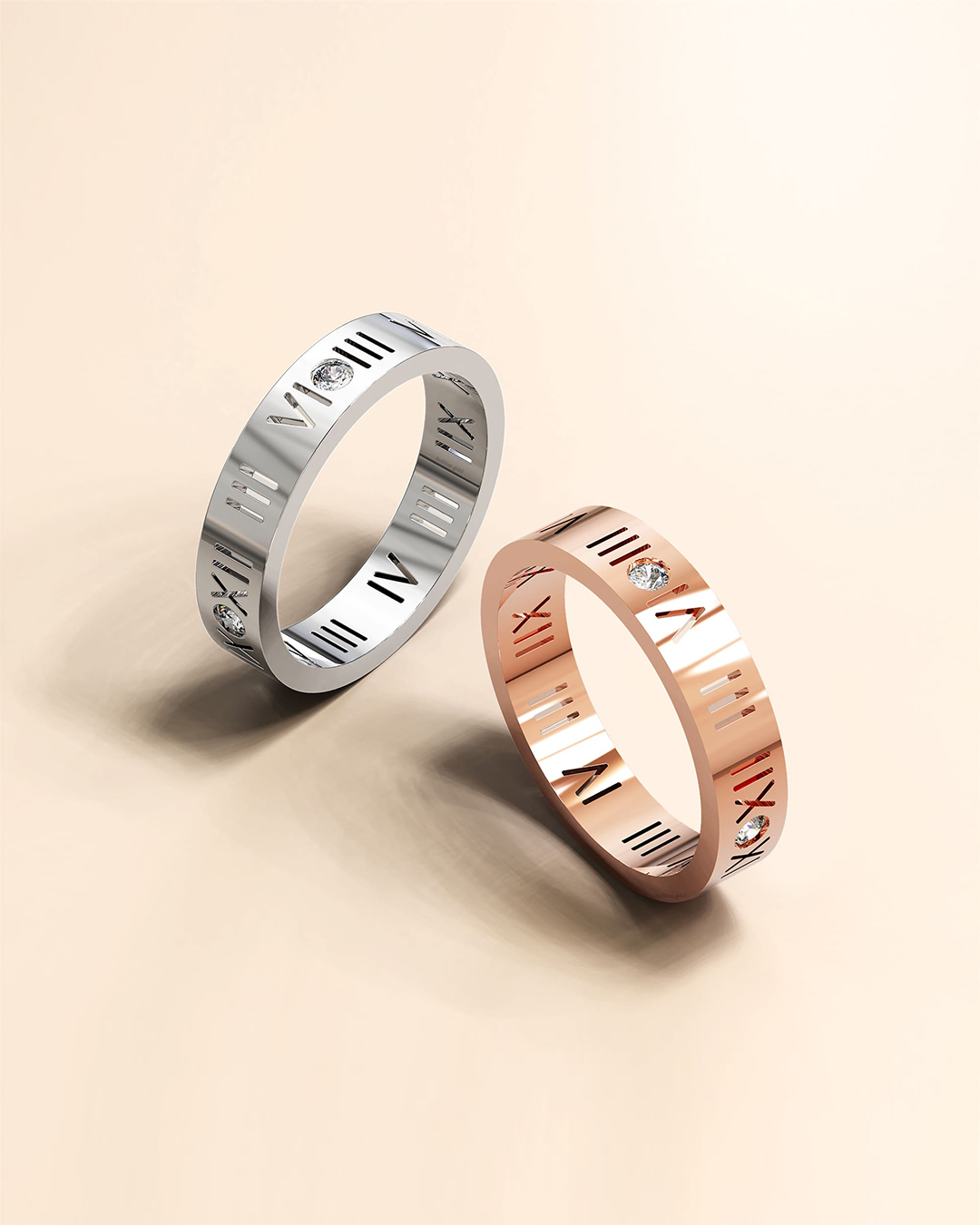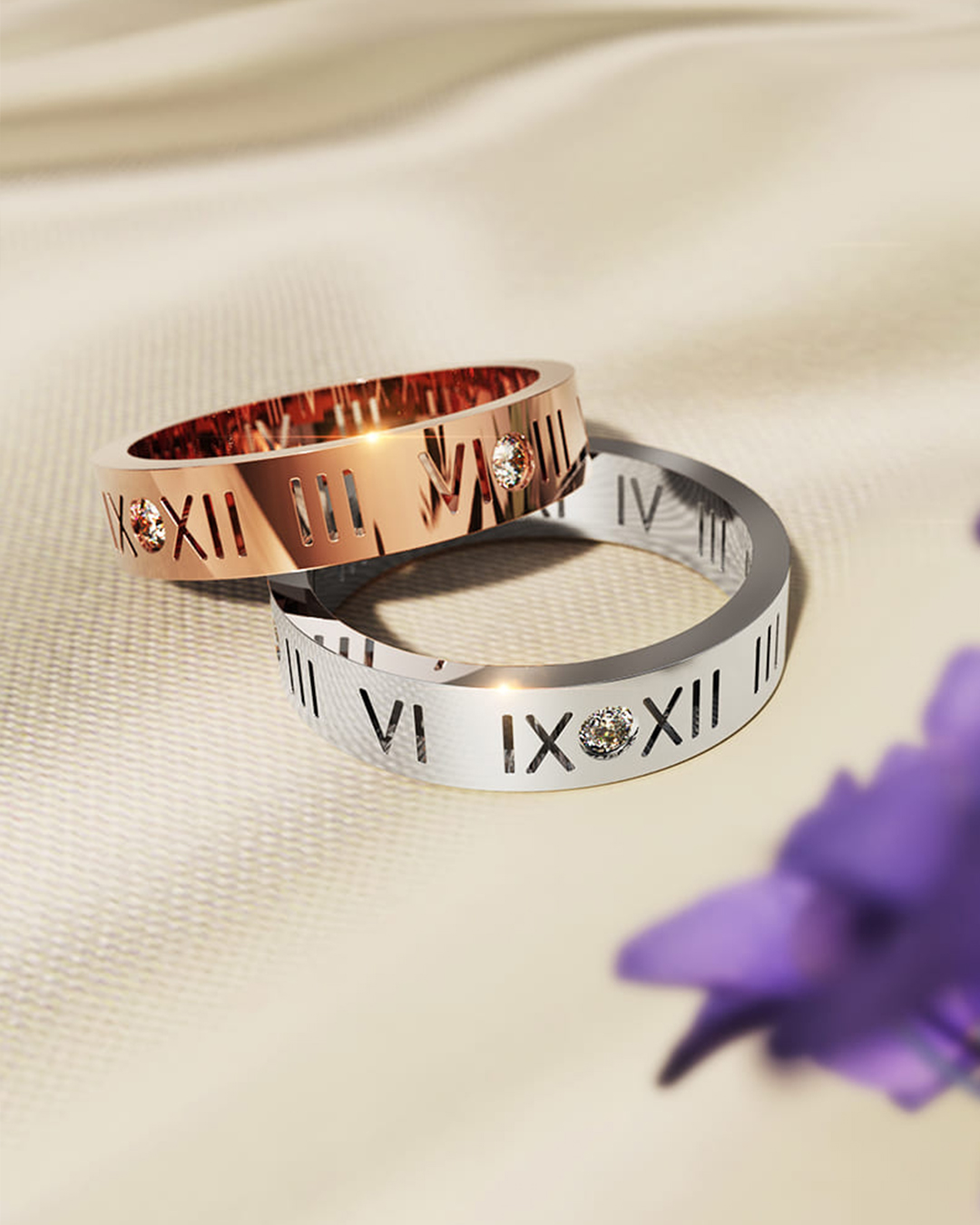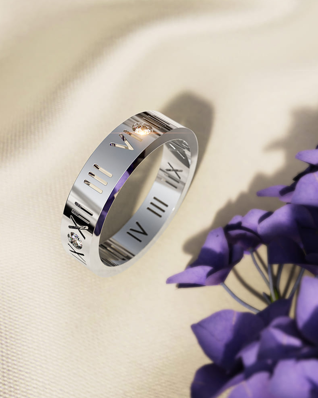 Show off your love of Roman culture with this ring band embellished with sparkling Zirconias. Adorned with an open roman numeral pattern and gleaming cubic zirconias, this masterpiece will never fail you. A lovely piece designed to beautify the hands.