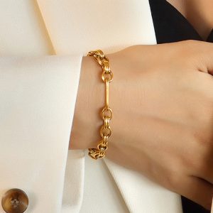 Trending now is the new Roxanne Oval Link Paperclip Chain Bracelet available in 18ct Rose Gold and White Gold Layered over hypoallergenic Titanium Steel for an everlasting high polish. It’s simple, it’s beautiful and it looks great on. It will bring any casual outfit to life with a touch of elegance and charm.