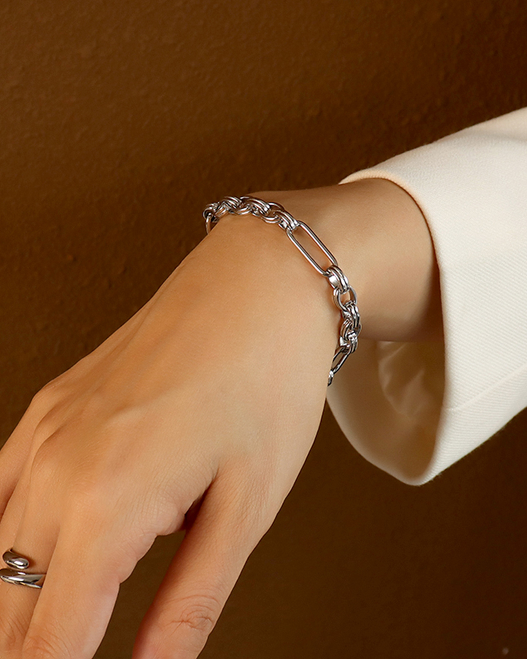 Trending now is the new Roxanne Oval Link Paperclip Chain Bracelet available in 18ct Rose Gold and White Gold Layered over hypoallergenic Titanium Steel for an everlasting high polish. It’s simple, it’s beautiful and it looks great on. It will bring any casual outfit to life with a touch of elegance and charm.