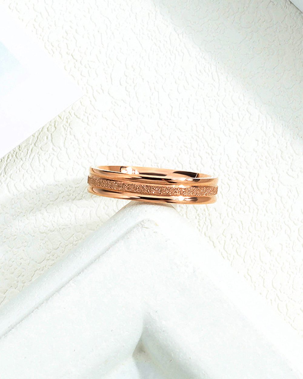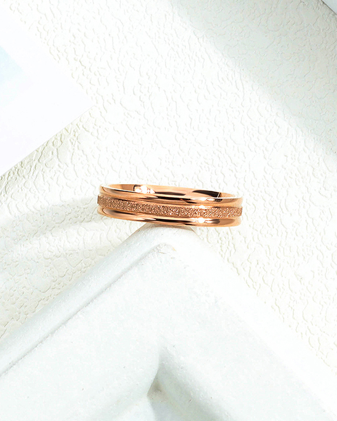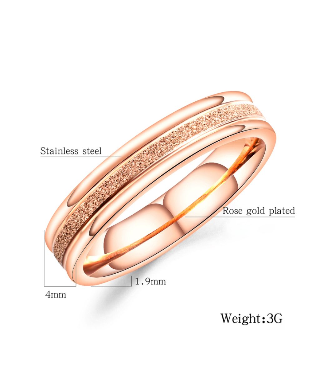 Treat yourself to the luxury rose gold plated stainless steel and high polished ring jewelry. This ring is perfect gift to give your lover, girlfriend, wife, mother, sister to show your affection for your lover.
