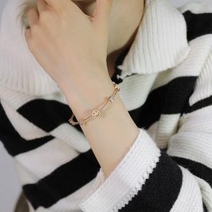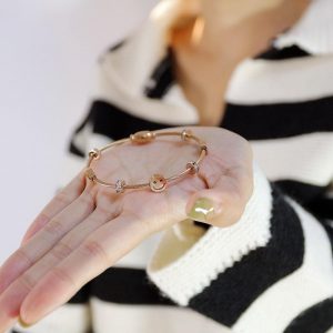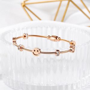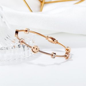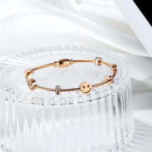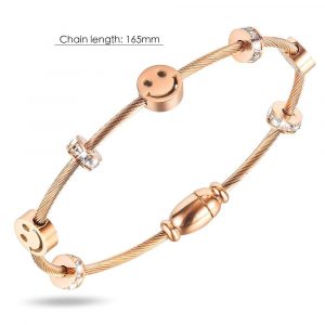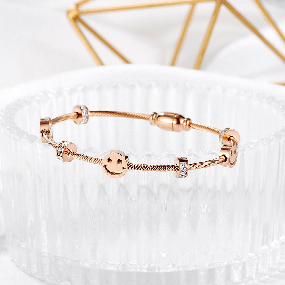 Spread positivity always. This charm bracelet will be the highlight of the day for you! Your day will get brighter with the smiley charm layered with stainless steel in Rose Gold, adorned with Zircon.
