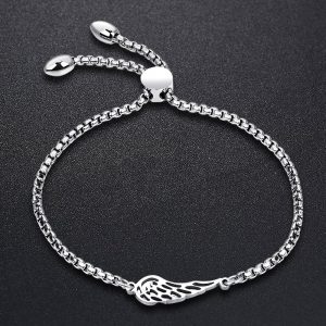 Add some style to your wrist with this beautiful 18ct white gold layered stainless steel bracelet designed with a single wing charm. This bracelet is secured with an adjustable slider clasp.