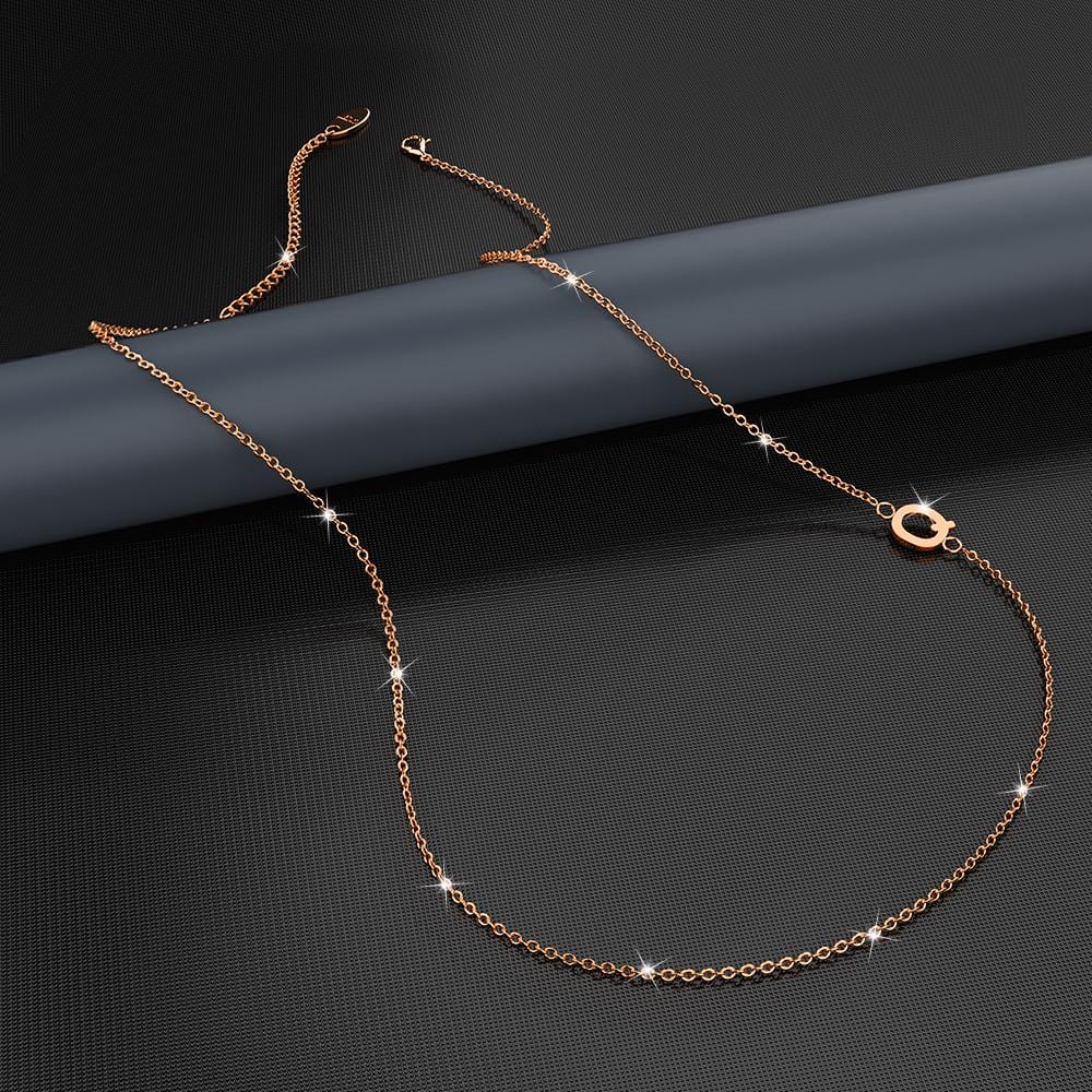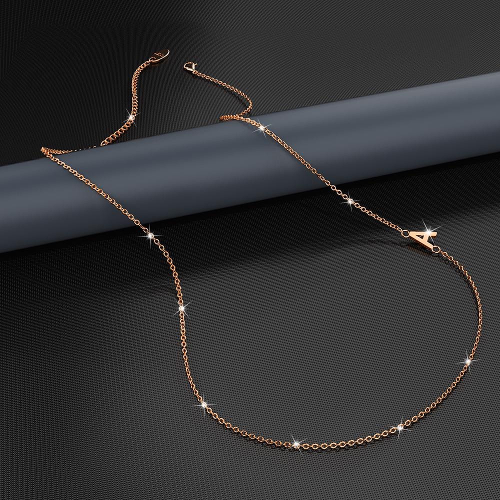 This modern alphabet necklace is a personalised jewellery design for you to spell out your name in a stylish way. Featuring a secure lobster clasp closure, each necklace along with its pendant is made out of high-quality titanium steel layered with a luxurious 18t Rose Gold plating, giving this necklace unquestionable style and elegance. Perfect for any occasion.