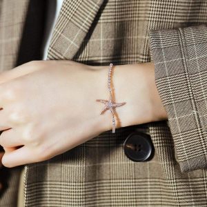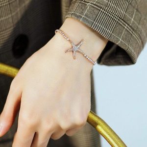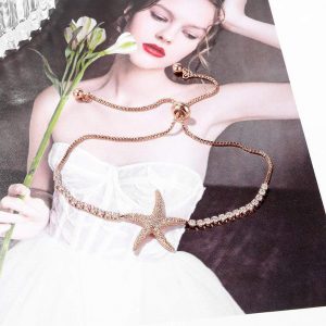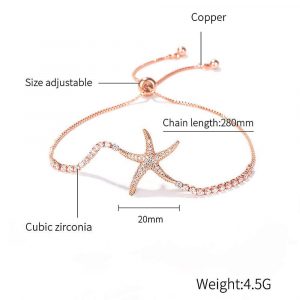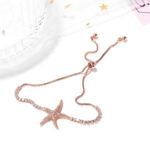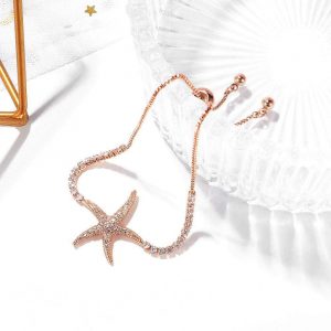 Take home your new best friend that will tie around your wrist. A shining rose gold bracelet with starfish charm to add on your sea life collection, with pull-tie adjustment method