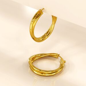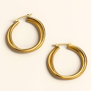 Looking for a subtle way to add some glamour to your outfit? These Subtle Hoop Gold Layered Earrings are just what you need! Made with only the finest titanium steel layered with 18ct Gold, these earrings have that modern tone which will complement any look. So why wait? Add them to your jewellery collection now!
