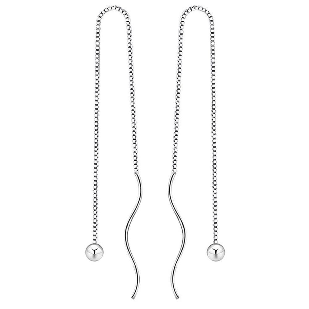 These sleek and chic earrings showcase a beautiful ear threader design crafted of 18K White Gold layered alloy chain. Give as a wonderful gift to a friend or as a gift to yourself! You deserve it!