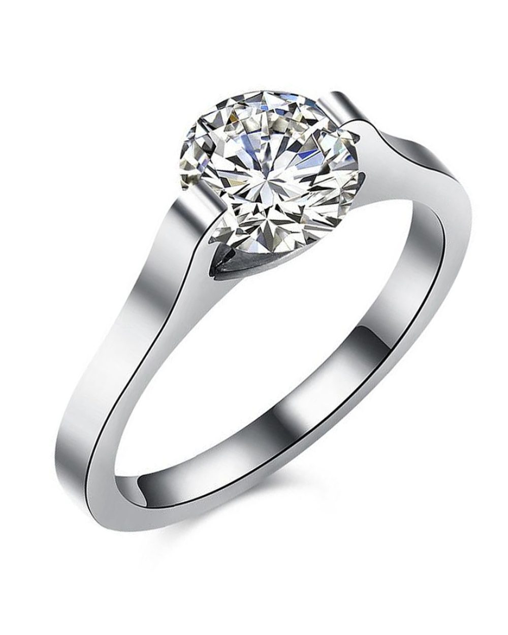 • Steal the spotlight when you wear this brilliant engagement ring made of 18ct White Gold Layered titanium steel featuring shimmering zirconias