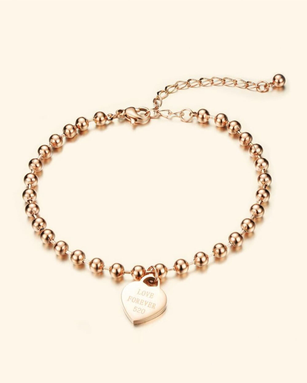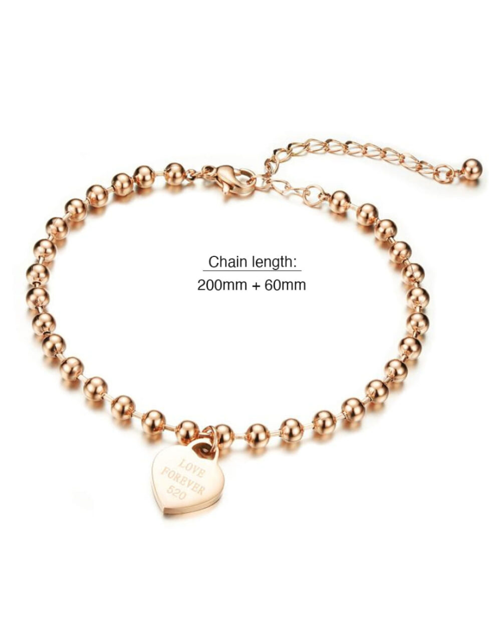 Enhance your look with this versatile anklet embellished with a heart shaped charm. Crafted of 18K Rose Gold layered stainless steel, this highly polished accessory is designed with ball chain for a chic and edgy style. A contemporary piece to complete your wardrobe.