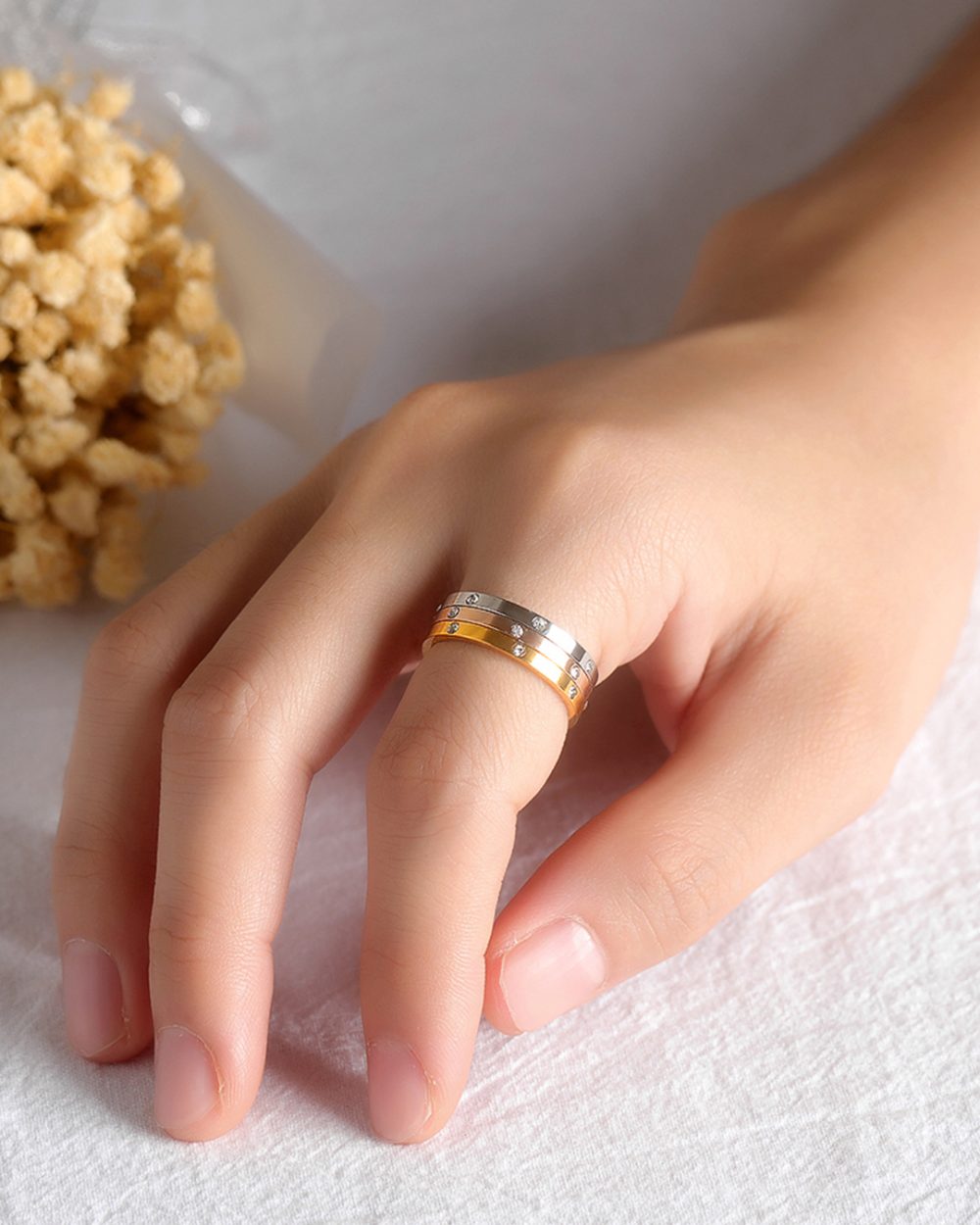 • 18ct White Gold, Gold and Rose Gold Layered Stainless Steel