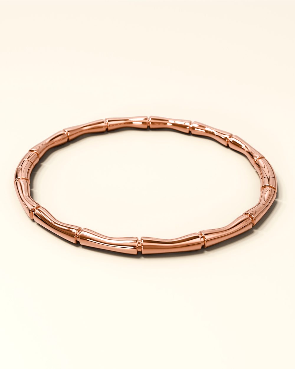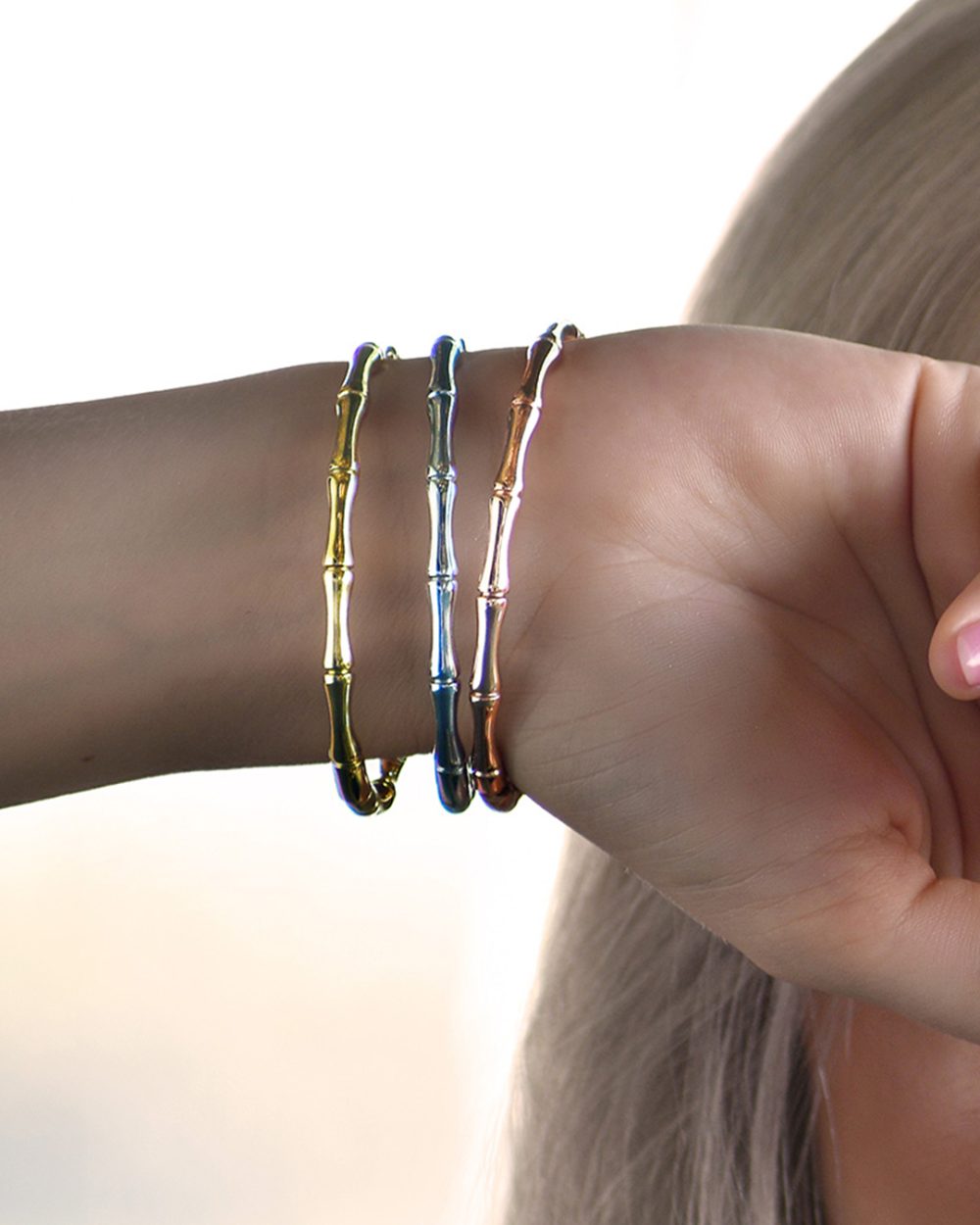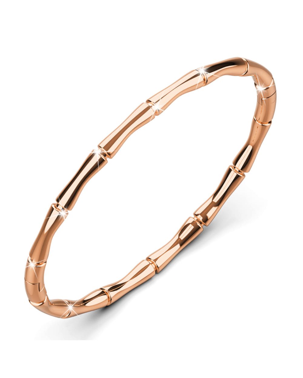 This stunning Handcrafted Trunket Bamboo design bangle is made from only the finest stainless steel which was layered with a luxurious 18ct Rose Gold plating. A stunning piece of jewellery that comes complete with a side hinged locking closure for easy removal. Perfect for that chic look that you were going for!
