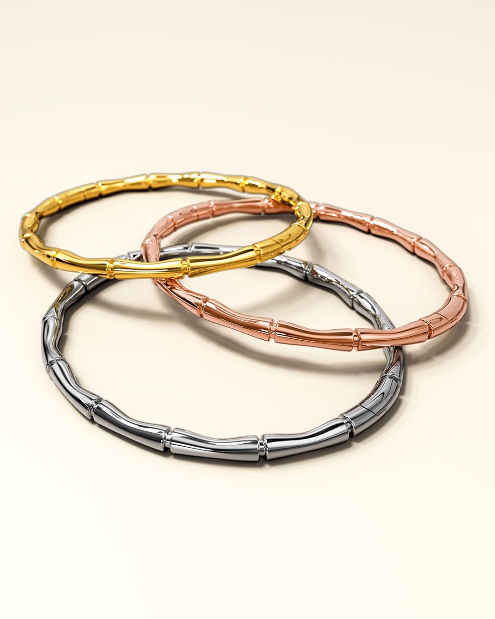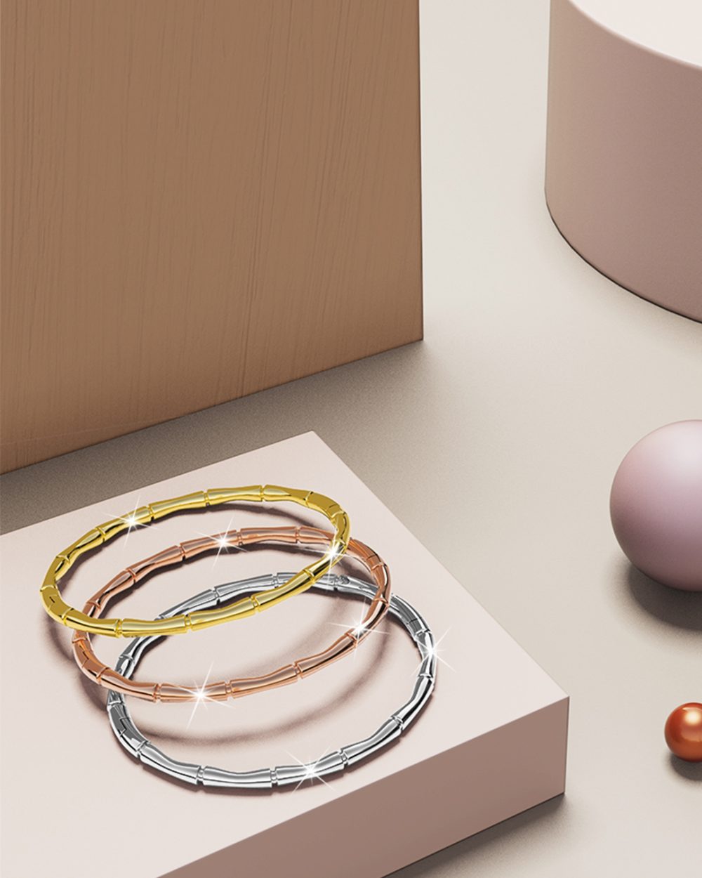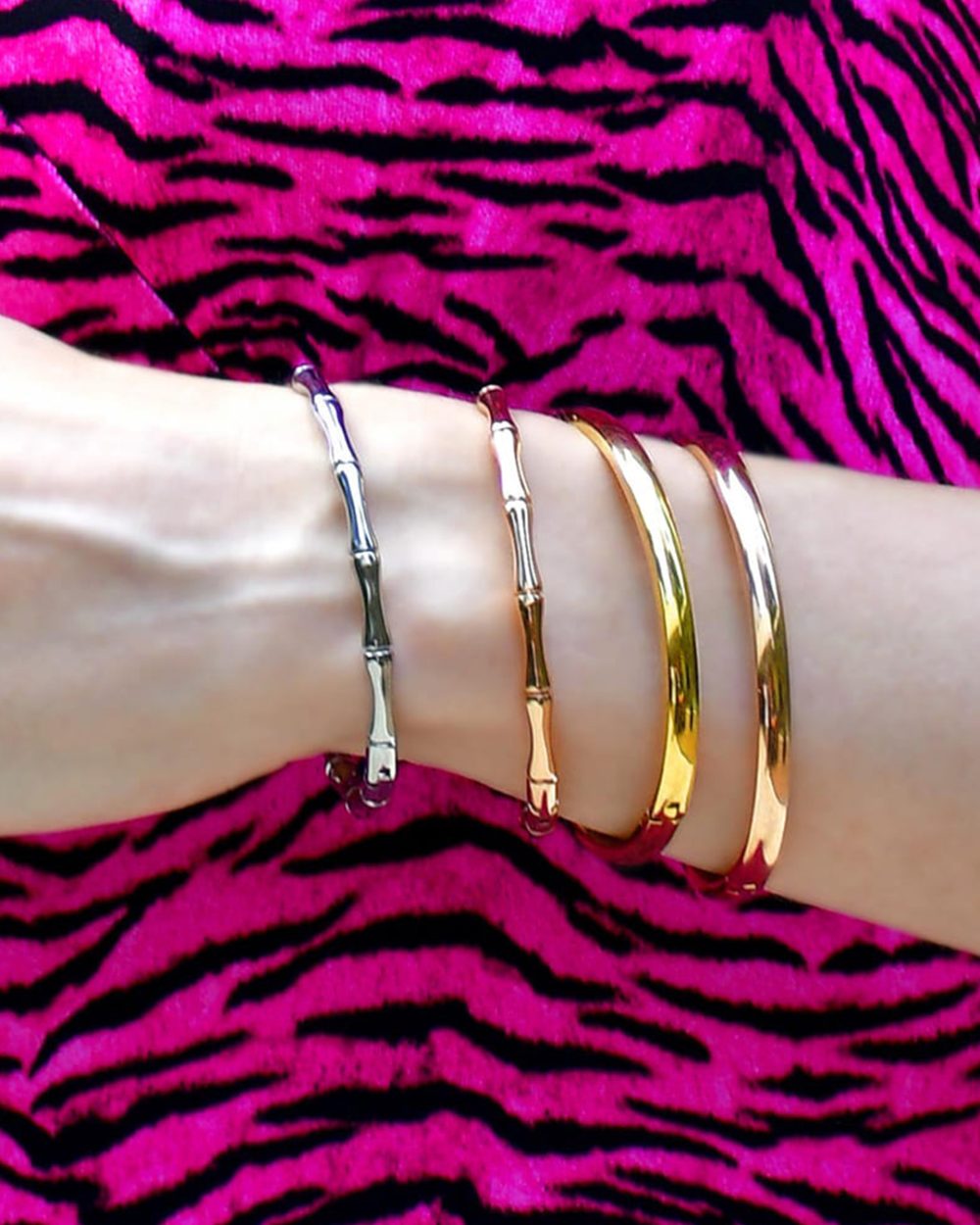 This stunning Handcrafted Trunket Bamboo design bangle is made from only the finest stainless steel which was layered with a luxurious 18ct Rose Gold plating. A stunning piece of jewellery that comes complete with a side hinged locking closure for easy removal. Perfect for that chic look that you were going for!